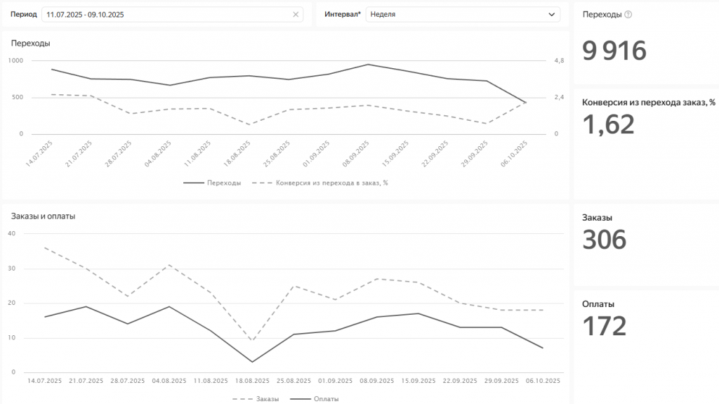• Удобные фильтры позволяют отслеживать данные по датам, типам продуктов и статусам заказов.