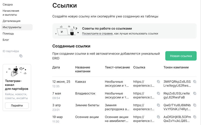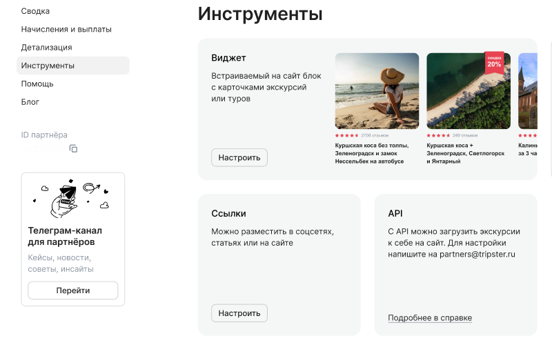 Здесь все партнёрские инструменты собраны в одном месте. Подробные описания и рекомендации помогают выбрать подходящие форматы под площадку и начать использовать их без долгих обучений.