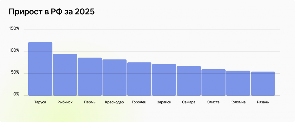 - Фотосессии. Всё ещё остаются популярным форматом, но в 2025 году их бронировали реже на 12% из-за роста цен. Чаще всего погулять с профессиональным фотографом хотят в Санкт-Петербурге, Казани и Москве