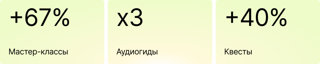 - Мини-группы. Камерный формат вырос по продажам на 22%, особенно популярной остаётся Экскурсия по Эрмитажу в мини-группе (билеты включены)